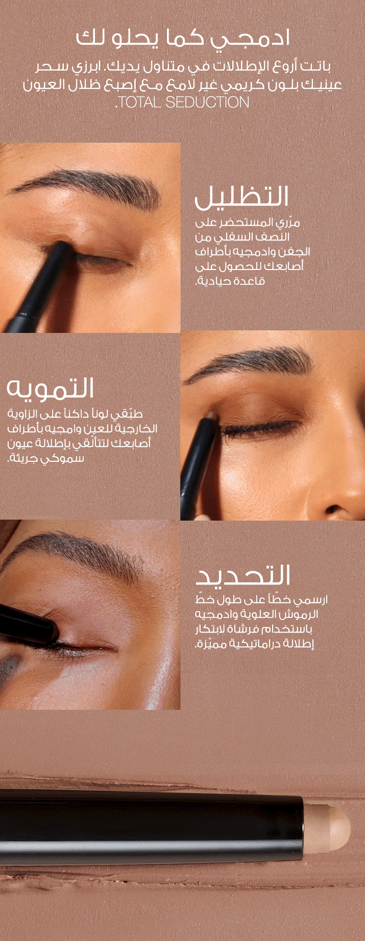 أجذبي كل الأنظار إلى عينيكِ مع إصبع ظلال العيون بتركيبته الكريمية الفائقة التي تفضي عن تأثير لوني غني غير لامع يدوم طوال اليوم ويقاوم التكدّس. يتمتّع هذا المستحضر بتركيبة معزّزة بتكنولوجيا Flexi-Lock، ويُشكّل طبقة كريمية مرنة تدوم طويلاً وتنساب بسلاسة على البشرة، للحصول على تأثير لوني مريح سهل الدمج وقابل للتعزيز كما أنّه مقاوم للتلطّخ والسيلان. ويتوفّر بثماني درجات تناسب جميع ألوان البشرة لابتكار إطلالات عيون لا تُعدّ ولا تُحصى تبقى ثابتةً حتى 16 ساعة.